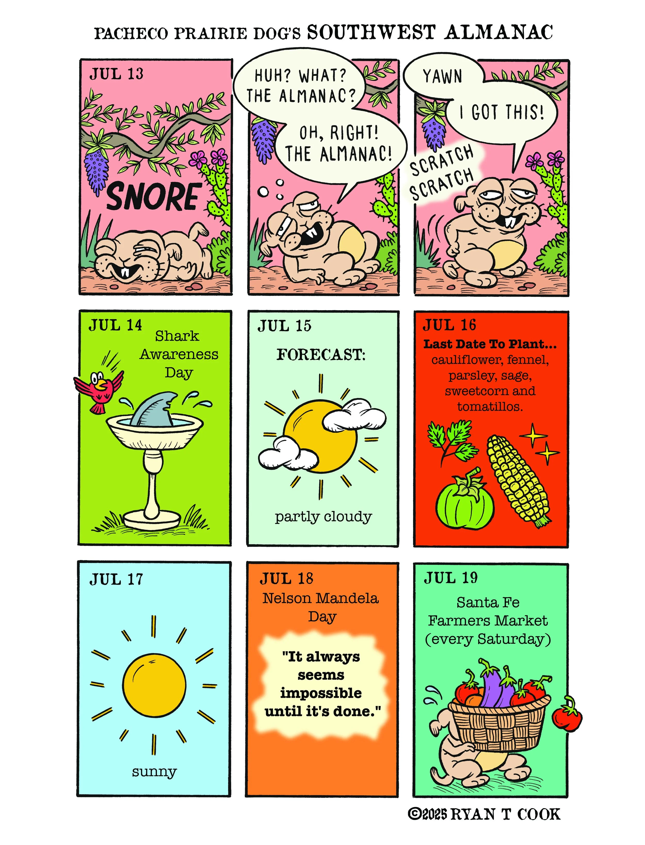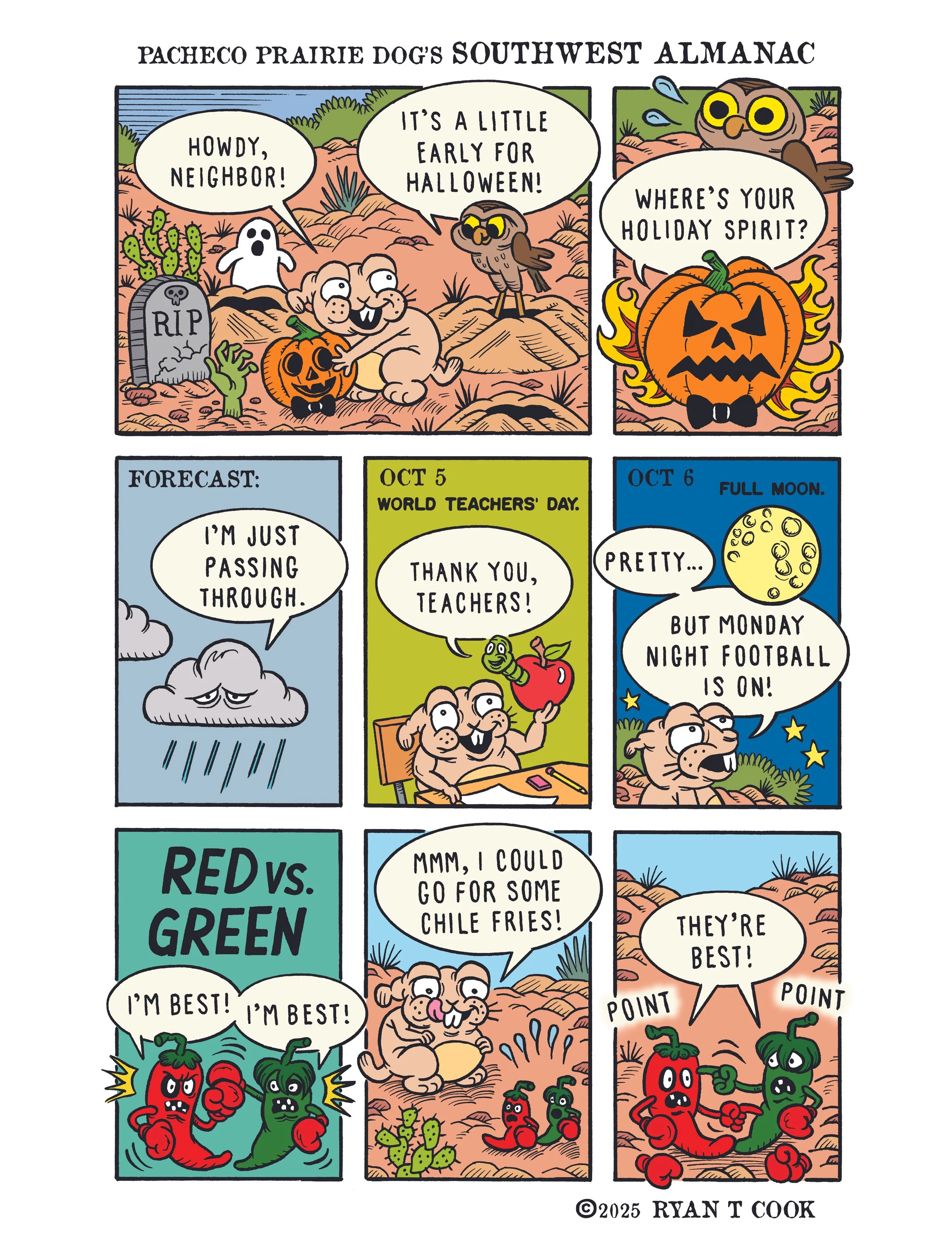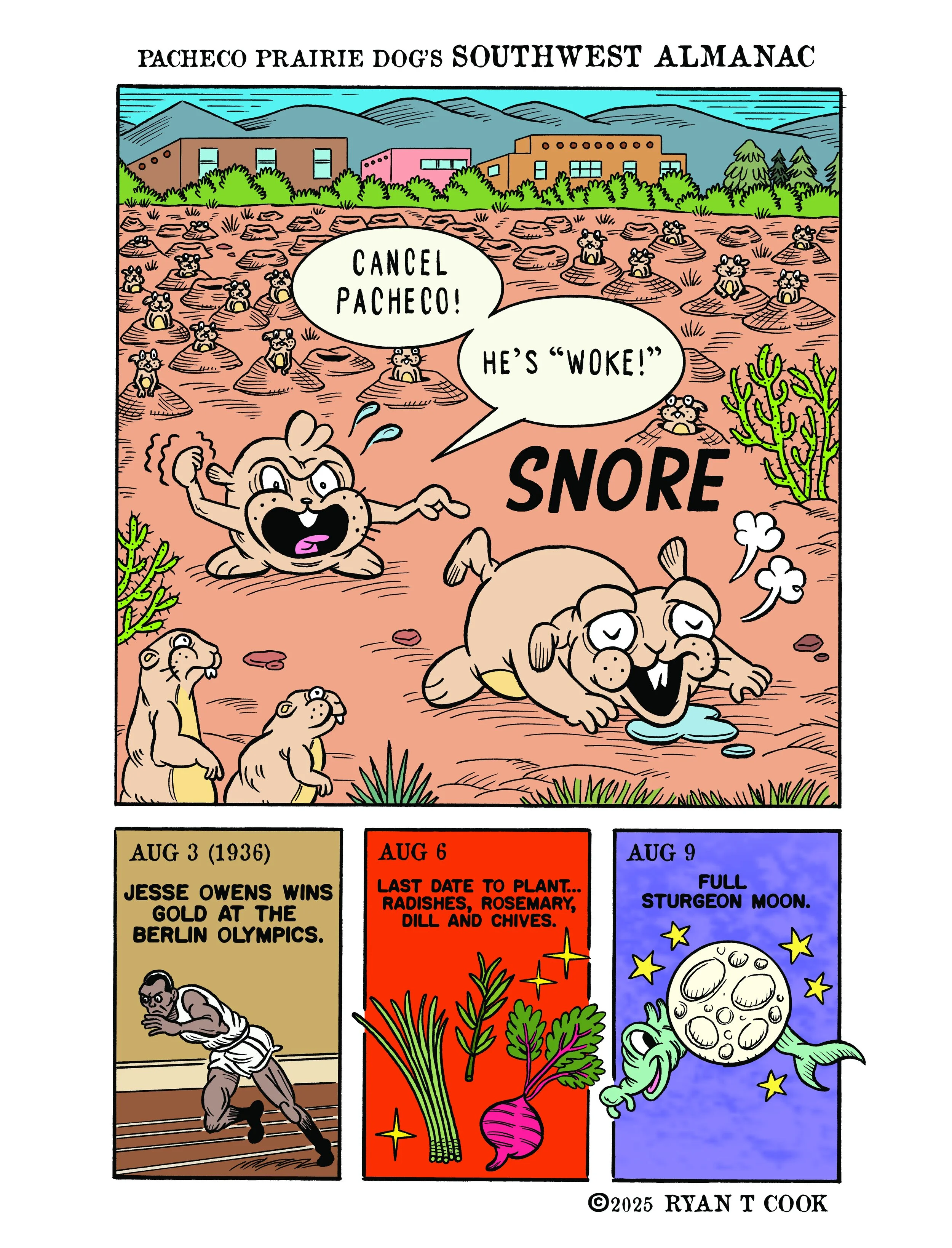 “Pacheco Prairie Dog’s Southwest Almanac” appears in the Sunday Edition of the 175+ year old Santa Fe New Mexican. Sunday Color Comics are an American cultural tradition. Read Pacheco every Sunday!