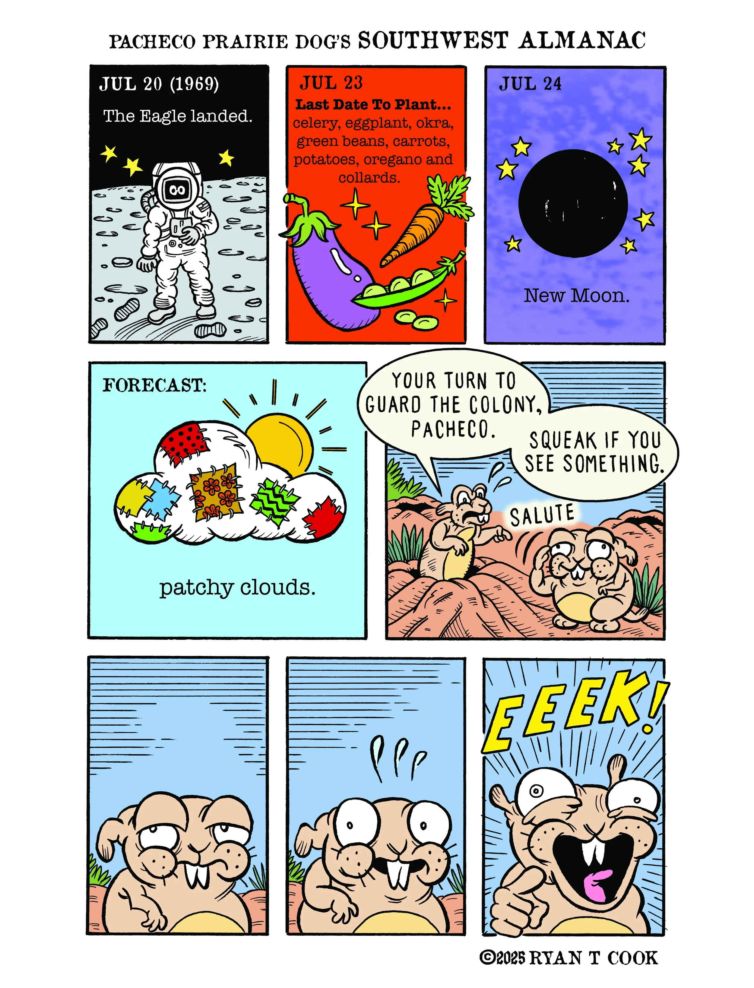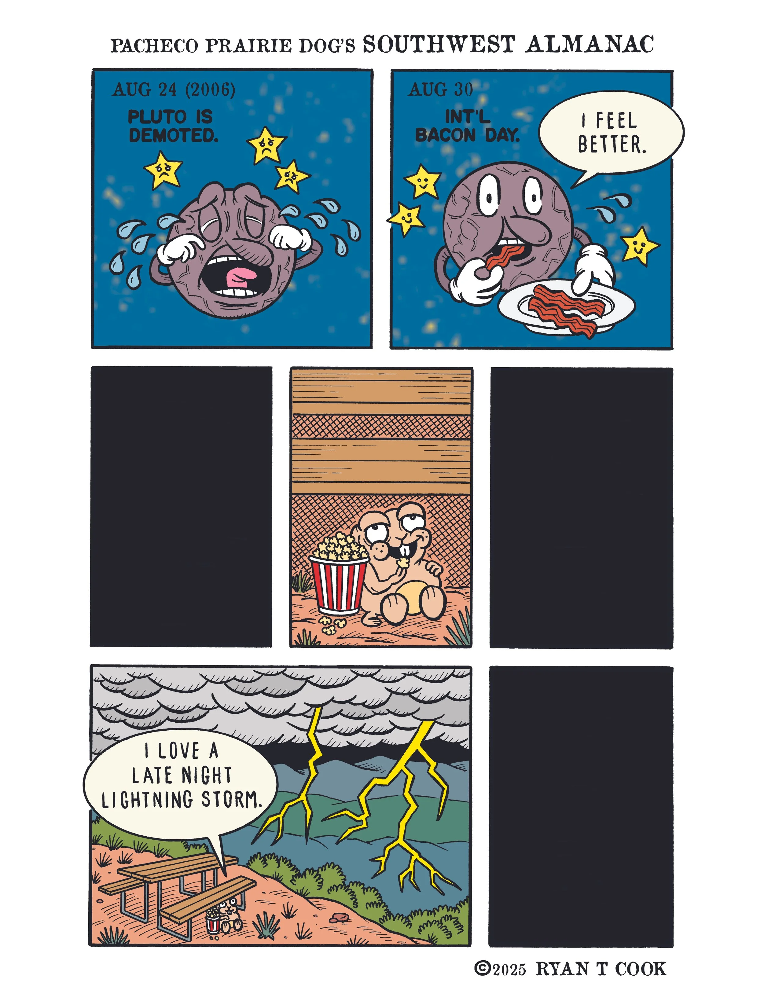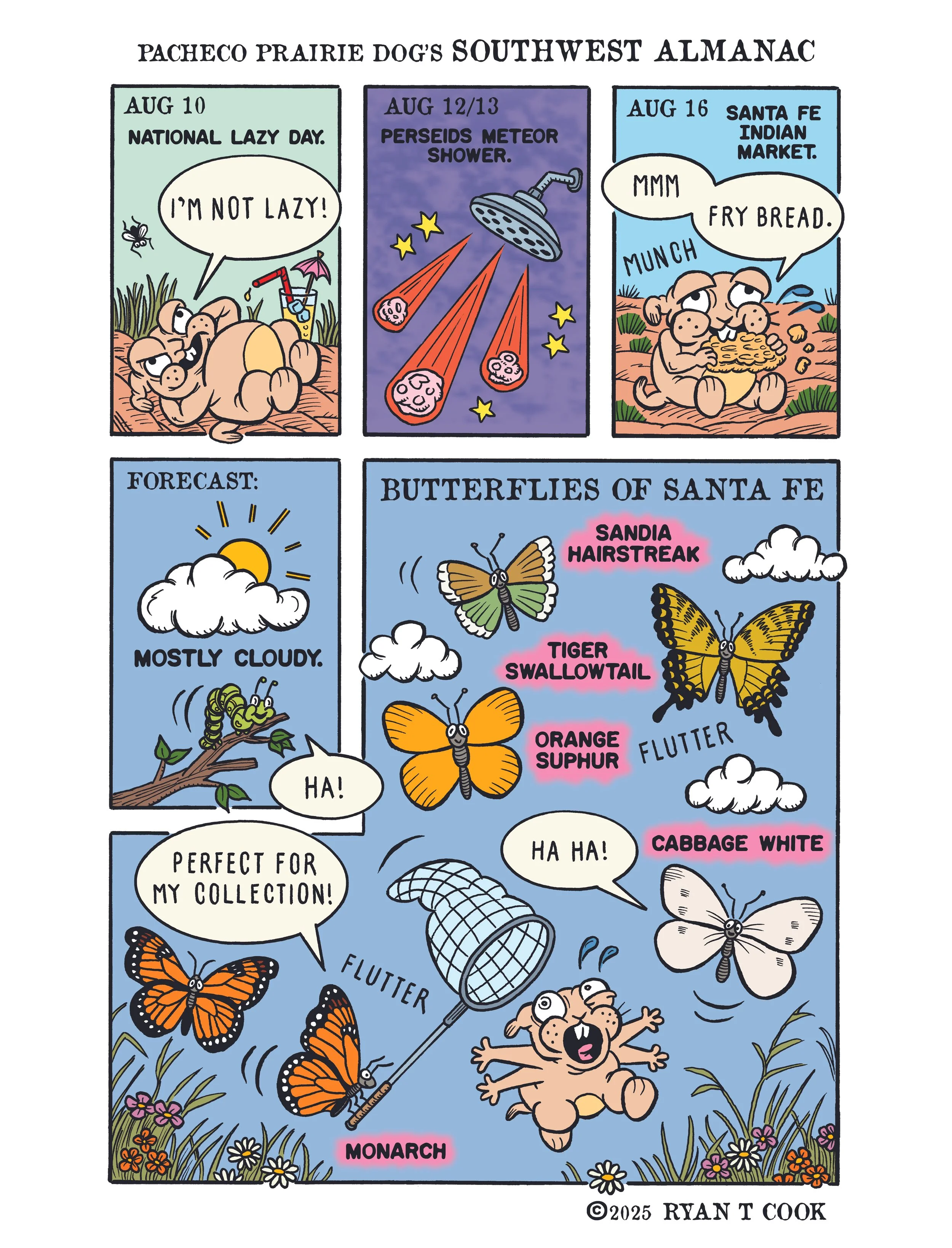 “Pacheco Prairie Dog’s Southwest Almanac” appears in the Sunday Edition of the 175+ year old Santa Fe New Mexican. Sunday Color Comics are an American cultural tradition. Read Pacheco every Sunday!